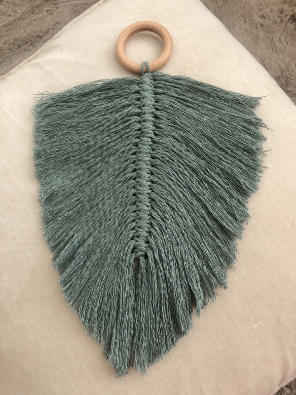 Macrame veer in de kleur Early Dew, handmade by ES! De afmeting is ongeveer 33x20cm (inclusief ring). Echt een eyecather in bijvoorbeeld een kinderkamer!