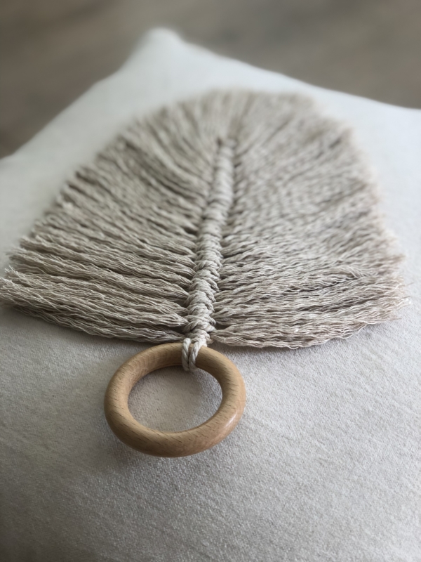 Macrame veer, handmade by ES! De afmeting is ongeveer 33x20cm (inclusief ring). Super leuk om aan de houten ring op te hangen maar neerleggen kan natuurlijk ook!